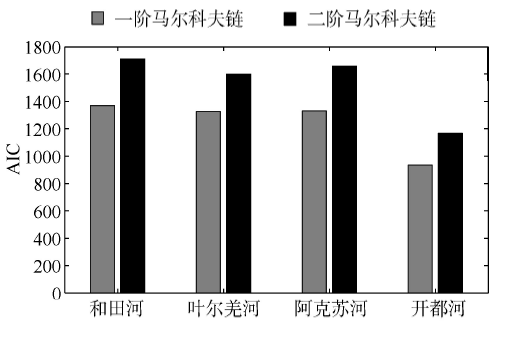 Fig. 3 Values of AIC criteria for 2 analyzed models of SPI-SRI class time series图3 一阶、二阶马尔科夫链模型的AIC信息准则值 |