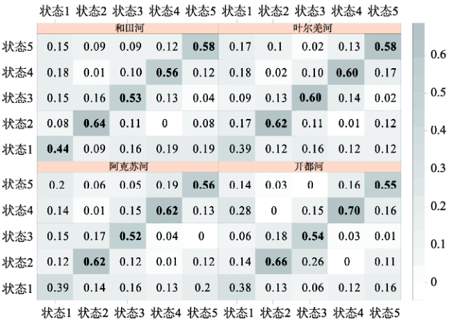 Fig. 4 One-step transition probability matrix in Tarim river basin图4 塔河流域各状态的一步转移概率 |