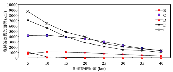 Fig. 10 Relationship between road and deforestation图10 道路与森林砍伐面积关系 |
