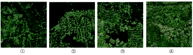 Fig. 3 Remote sense images of deforestation areas图3 森林砍伐严重区域的Landsat ETM遥感影像图 |