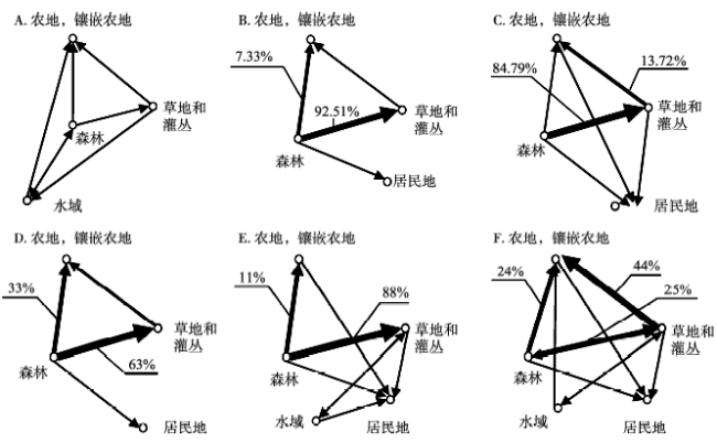 Fig. 6 Landscape change trajectory in hotspots图6 热点区景观变化轨迹图 |