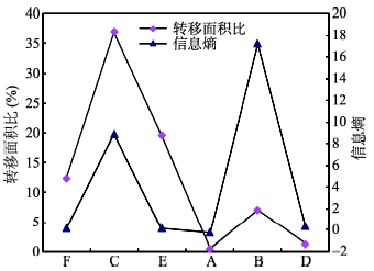 Fig. 9 Line chart of transfer area ratio and information entropy图9 转移面积比和信息熵折线图 注:破碎性差值指1980年与2005年森林破碎性的差值 |