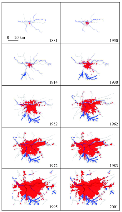 Fig. 1 Development of the urban spot corresponding to São Paulo Metropolitan图1 圣保罗大都市区的发展 |