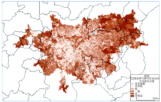 Fig. 5 Social map of São Paulo Metropolitan Area: Scoring of spatial classification of cost (SSCC)图5 圣保罗大都市区的社会地图——成本空间分类的评分(SSCC) |