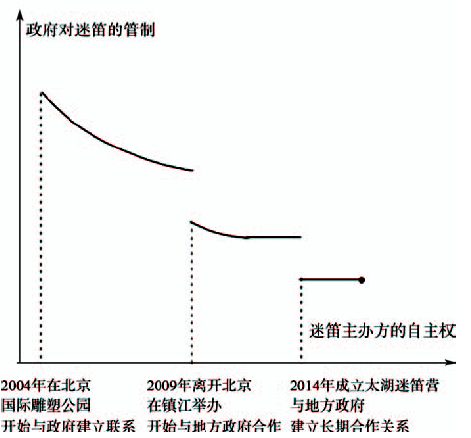 Fig. 3 The evolution of the relations between the festivalorganizers and the governments图3 迷笛主办方与政府间关系的演进过程 |