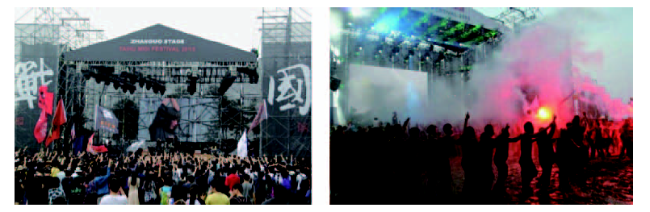 Fig. 5 The bodily performance of musical fans at the festival scene图5 音乐节现场乐迷的身体表演 |