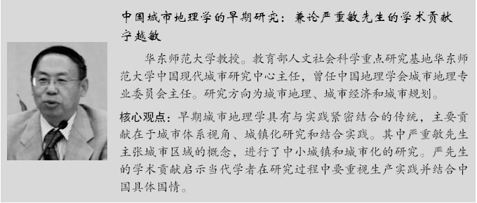 (1)早期城市地理学具有与实践紧密结合的传统,主要贡献在于城市体系视角、城镇化研究和结合实践。20世纪50年代以前,城市地理学研究局限在对一些现象的描述上。从50年代开始,严重敏先生发表三篇文章,研究现代城市地理学,突破局限。当年城市地理学的研究都和生产实践紧密结合。一方面,这些学者明确研究是为建设服务的;另一方面,通过深入调研,在实践中凝练问题,提升理论高度,修正国外的相关理论和学说。