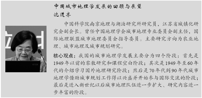 (1)中国城市地理学发展的四个阶段和几个重要节点。第一个阶段是1949年以前。这个阶段有不少地理学家发表过关于城市分布和研究个别城市地理的文章。第二个阶段1949年至20世纪60年代的十余年里,地理学者曾翻译、介绍了美苏等国外城市地理研究动向,并对城市的历史、类型、职能与城镇分布等方面作了研究,发表了一定数量的文章。第三个阶段就是近代中国城市地理的兴盛时期,70年代中期,借力于全国城市规划工作的复兴,城市地理学开始发展。80-90年代,城市地理学者在承担国家任务的同时,也参加国际交流和国际合作,使城市地理进入有史以来最旺盛发展的时期。进入新世纪,城市地理的队伍更大,研究内容更广更新,进入发展的第四个阶段。