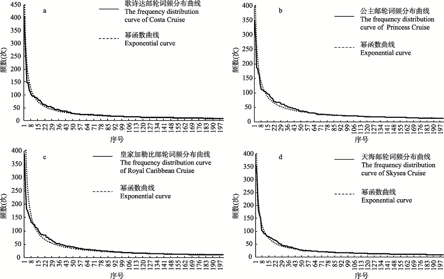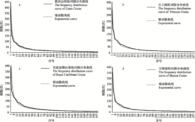 Fig. 3 Long tail of frequently used words in different cruise brands图3 不同邮轮品牌高频词长尾分布 |