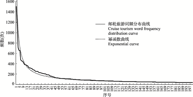 Fig. 2 Long tail of frequently used words in cruise tourism图2 邮轮旅游高频词长尾分布 |