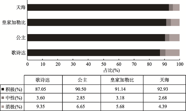 Fig. 9 Sentiment analysis for different cruise brands图9 游客对不同邮轮品牌情感分析 |