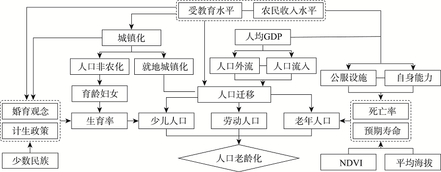 Fig. 5 The mechanism of rural population aging图5 农村人口老龄化的形成机制 |