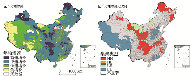 Fig. 4 Annual average growth rate of rural population aging from 2000 to 2010图4 2000—2010年中国农村人口老龄化年均增速 注:此图根据国家测绘地理信息局标准地图(审图号:GS(2016)1569号)绘制而成,底图无修改。 |