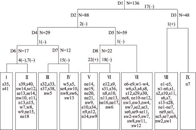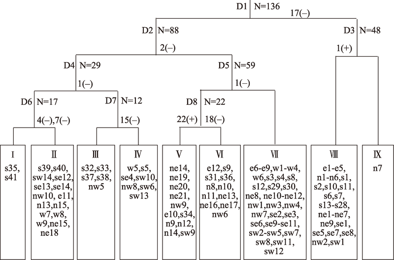 Fig. 2 The classification of all the samples by TWINSPAN图2 所有样地的TWINSPAN分类 |