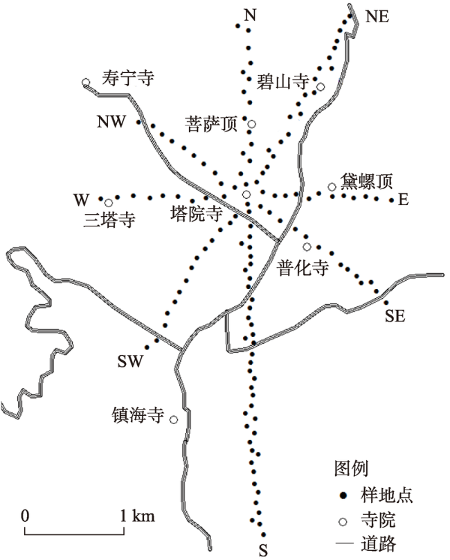 Fig. 1 Distribution of vegetation sample sites in Wutai Mountain图1 五台山植被取样分布 |