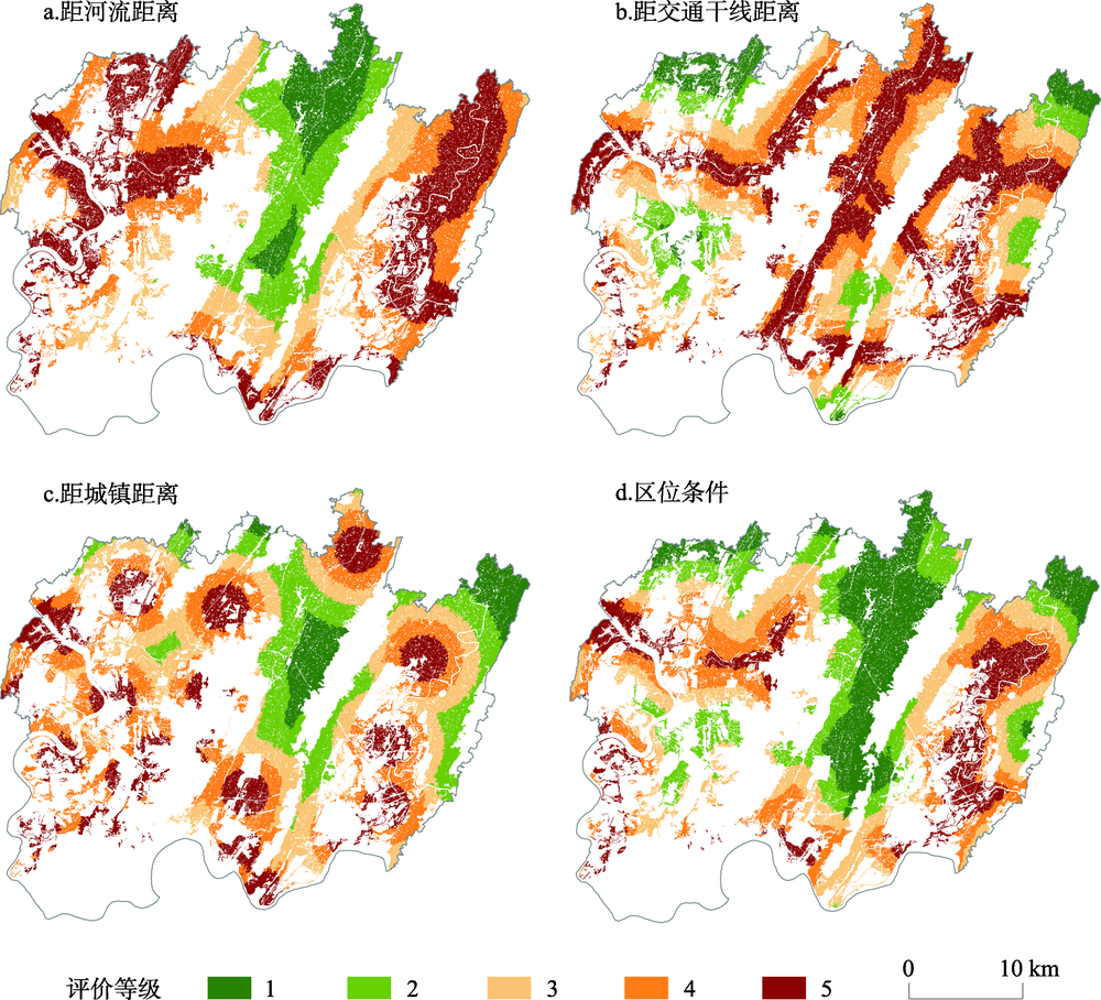Fig. 4 Evaluation grade of ecological suitability for location condition图4 区位条件生态适宜度评价等级 |