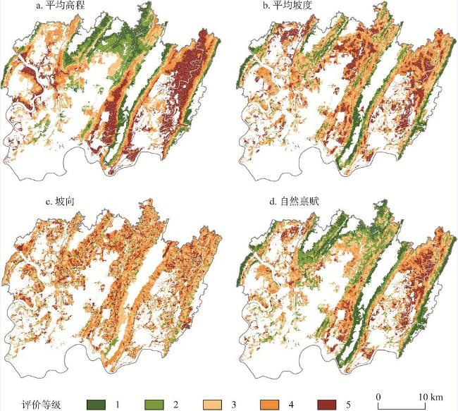 Fig. 3 Evaluation grade of ecological suitability for natural endowment图3 自然禀赋生态适宜度评价等级 |