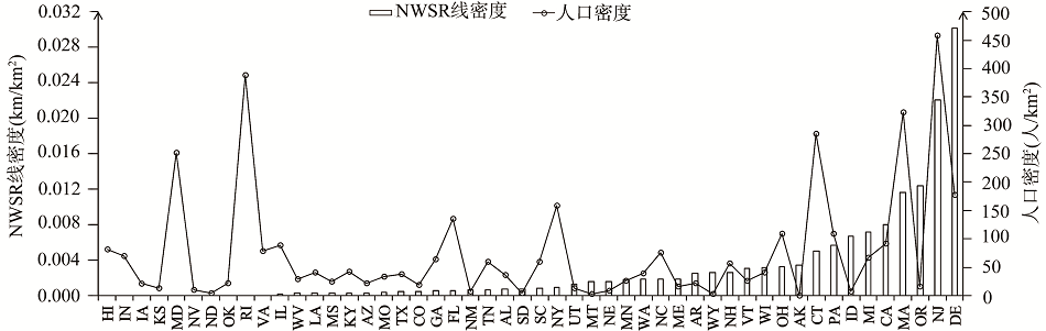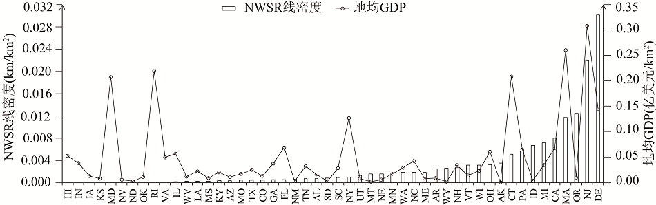表7 地均GDP与NWSR线密度相关性Tab. 7 Correlation between GDP/km2 and NWSR line density |