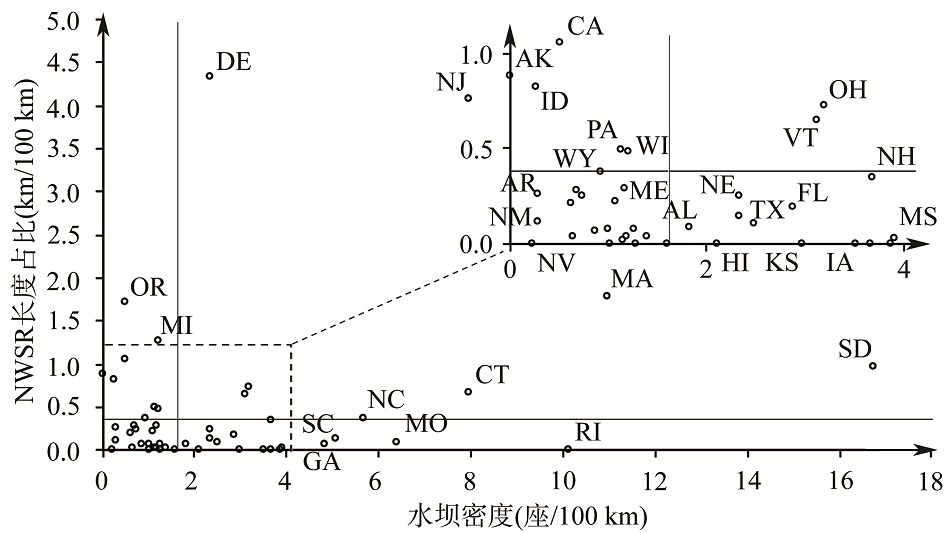 表5 不同流域的NWSR数量分布Tab. 5 The number of NWSR in different watersheds of the USA |