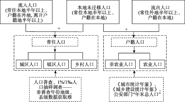 基于实体地域的城区人口变化 | 提取末期和初期的城区常住人口,城区统计口径可能发生变化 | 末期城区常住人口少于初期城区常住人口之差 |