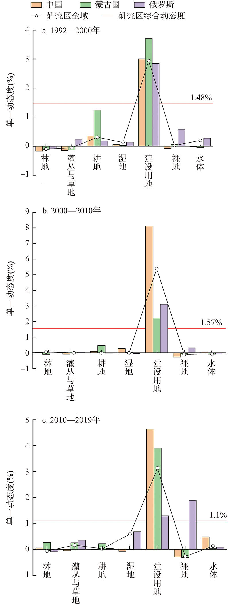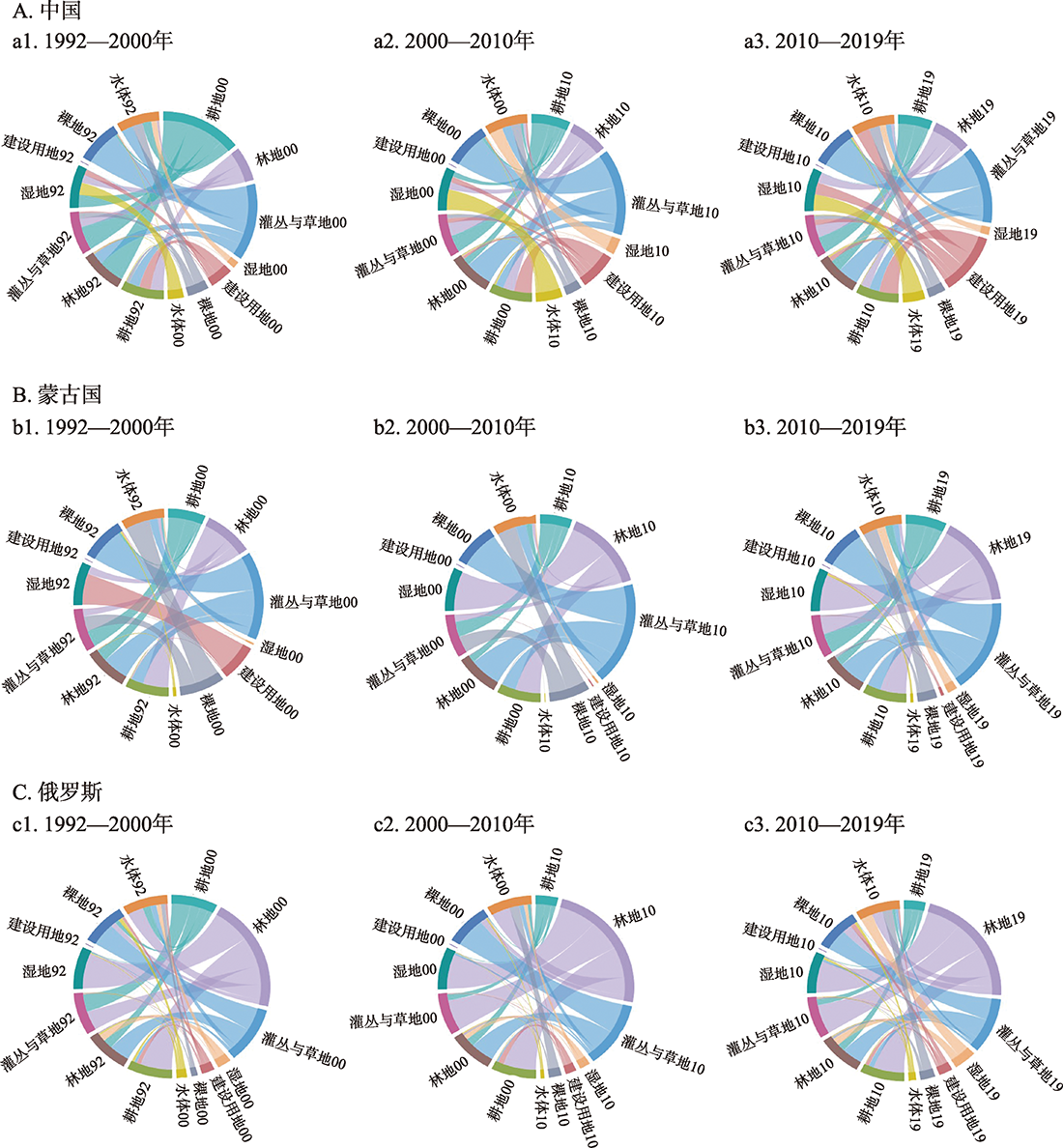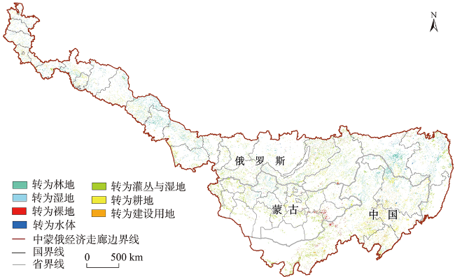 中蒙俄经济走廊战略地位显著,研究其土地利用格局变化与机理,对亚欧大陆复杂巨系统的生态环境保护和社会经济可持续发展意义重大。本文基于全球土地覆盖遥感数据和实地考察,对自苏联解体及蒙古私有化以来的1992—2019年,中蒙俄经济走廊土地利用格局及其驱动因素和时空变化规律进行了研究。结果表明:①1992—2019年,中蒙俄经济走廊土地利用变化活跃,土地转换面积为361954 km2,主要表现为林地持续下降,建设用地、耕地面积迅速扩张。② 中国部分的林地呈现先减后增的趋势,2000年后东北平原北部林地增加显著,灌丛与草地、裸地分别净减少13325 km2、16632km2;蒙古国部分的林地、灌丛与草地均呈现先减后增的趋势,而裸地面积先增后减,苏赫巴托尔省、肯特省、东戈壁省和戈壁苏木贝尔省四省交界地带裸地增加明显;俄罗斯部分的林地持续下降,共减少46742 km2,耕地面积增加8478 km2,贝加尔湖周边裸地增加41417 km2;俄蒙边境、色楞格河流域以及中蒙俄铁路沿线地区存在沙漠化风险。③ 人口、经济、产业结构以及政策等是中蒙俄经济走廊土地利用变化的主要因素。2010—2018年,人口密度对转为林地的土地影响最大,其解释力q值为0.2597,GDP总量对转为建设用地、裸地、耕地的影响最大,其解释力q值分别为0.9094、0.2234、0.5518。就三国而言,中国部分主要受人口和经济因素以及退耕还林政策的影响,而蒙古国部分则受私有化后超载过牧及开垦耕地的影响,俄罗斯部分主要是砍伐林地和开垦耕地的影响。本研究结果旨在为中蒙俄经济走廊土地资源可持续利用和管理提供科学依据。