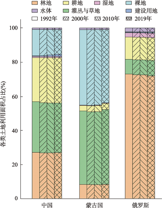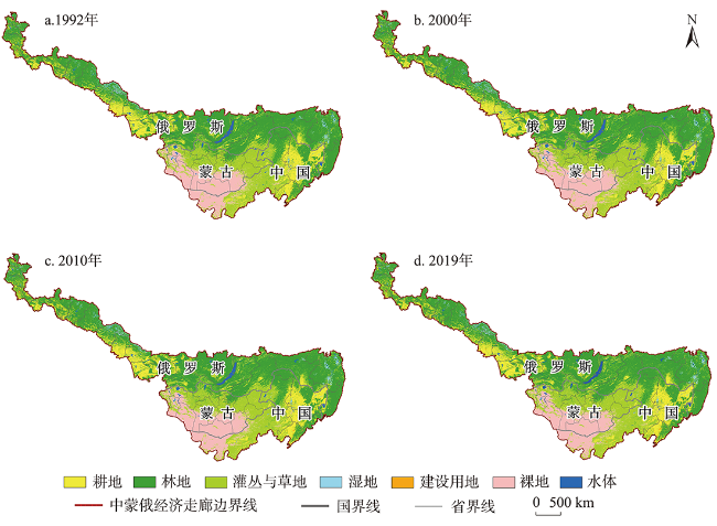 表1 1992—2019年中蒙俄经济走廊土地利用面积Tab. 1 Land use area of the China-Mongolia-Russia economic corridor from 1992 to 2019 |