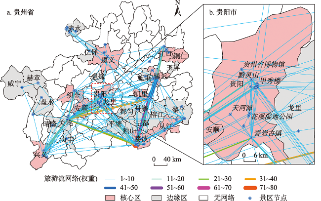 气候环境对人类行为具有重要影响,在全球变暖和城市热岛效应不断加剧的背景下,避暑旅游已经成为全球旅游者夏季出行的重要选择。贵州省作为中国国内主要的避暑旅游目的地之一,针对避暑旅游流网络特征及影响因素的研究尚未开展。本研究通过对贵州省避暑旅游现象长期的跟踪调查,获取2015—2019年间有效避暑旅游流线路数据2177条,运用复杂网络、GIS空间分析、QAP回归分析等方法,对避暑旅游流网络结构特征和影响因素进行研究。结果表明:① 避暑旅游流网络规模大、密度低,集聚特征明显,网络发育不完善,具有显著的“核心-边缘”结构,核心城市和景区分别呈“板块”和“点轴”状分布,旅游流线路具有“基营”和“环线”式结构特征。② 交通中心城市和核心景区是避暑旅游流的集散中心,贵阳在整体网络中具有突出优势和无法替代的地位,避暑旅游城市和景区在空间上相互交织,形成“贵(阳)安(顺)-荔波-凯(里)镇(远)”的“▽”空间结构。③ 避暑旅游流空间分布受气候舒适度、空间邻近性、旅游资源禀赋、接待服务能力和交通便捷程度等因素共同影响。最后,从区域旅游协调发展、旅游统计数据改革、网络空间结构优化等方面,对贵州省避暑旅游高质量发展提供了对策建议。