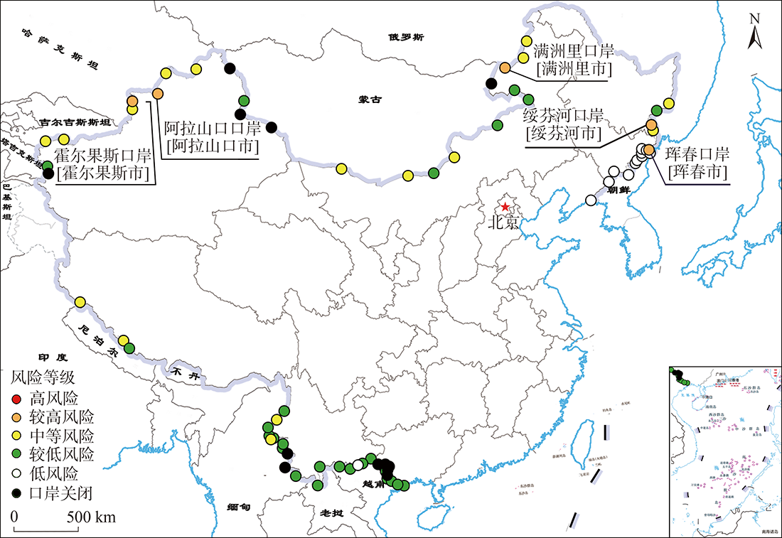 传染病影响人类福祉和可持续发展,边境口岸地区是传染病境外输入防控中的薄弱区域。然而,目前关于边境地区传染病境外输入风险和防控的研究大部分停留在指标体系构建或定性分析的层面。现有研究中缺乏从地理学视角分析边境口岸传染病的时空演化,对传染病风险的定量测度与情景模拟有待加强,对中国边境口岸的疫情防控工作缺乏精准指导。本文构建了一般意义上的边境口岸地区传染病境外输入风险指数(ERI),评估了一般年份中国陆地边境口岸地区传染病境外输入风险,并以2020年新冠肺炎疫情为例,对中国陆地边境口岸不同管控措施情境进行风险分析,识别了疫情境外输入的高风险口岸。结果表明:① 一般年份中约1/5的中国陆地边境口岸风险较高,包括瑞丽、二连浩特、满洲里、东兴等,其中中缅边境地区最为集中。② 2020年中国边境口岸地区新冠肺炎疫情境外输入呈现空间极化特征,集中发生在满洲里、绥芬河、瑞丽三个口岸地区。③ 中俄、中哈边境口岸地区是新冠肺炎疫情境外输入的较高风险区域,霍尔果斯、满洲里、阿拉山口、绥芬河、珲春5个口岸仍存在新冠肺炎疫情境外输入的较高风险。增强边境口岸管控措施对降低新冠肺炎疫情境外输入风险效果显著,后疫情时代需积极转变边境对外贸易方式,协调边境发展与疫情管控之间的关系。本文提出的传染病跨境传播风险评估方法,不仅为当前新冠肺炎疫情的常态化防控提供决策参考,更为今后各类传染病境外输入的定量评估和分级分类管控提供科学支撑。