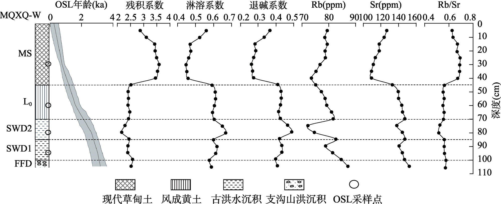 表2 黄河玛曲段MQXQ-W剖面OSL测年参数与结果Tab. 2 OSL dating results of the MQXQ-W profile in the Maqu reaches of the Yellow River |