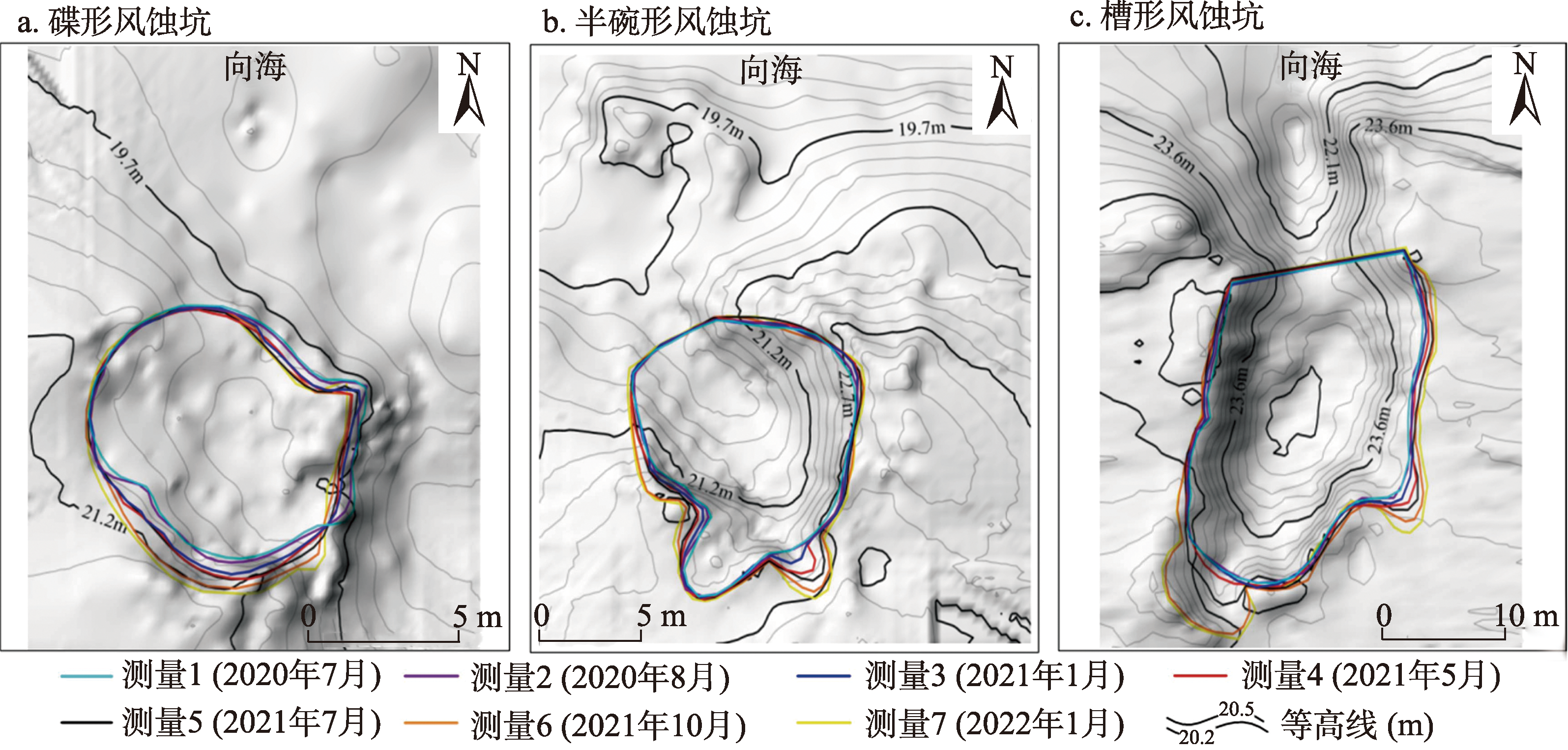 张绍云. 海岸前丘风蚀坑形态变化及其动力学机制研究:以中国平潭岛为例. 广州: 中山大学博士学位论文, 2022: 49-131.