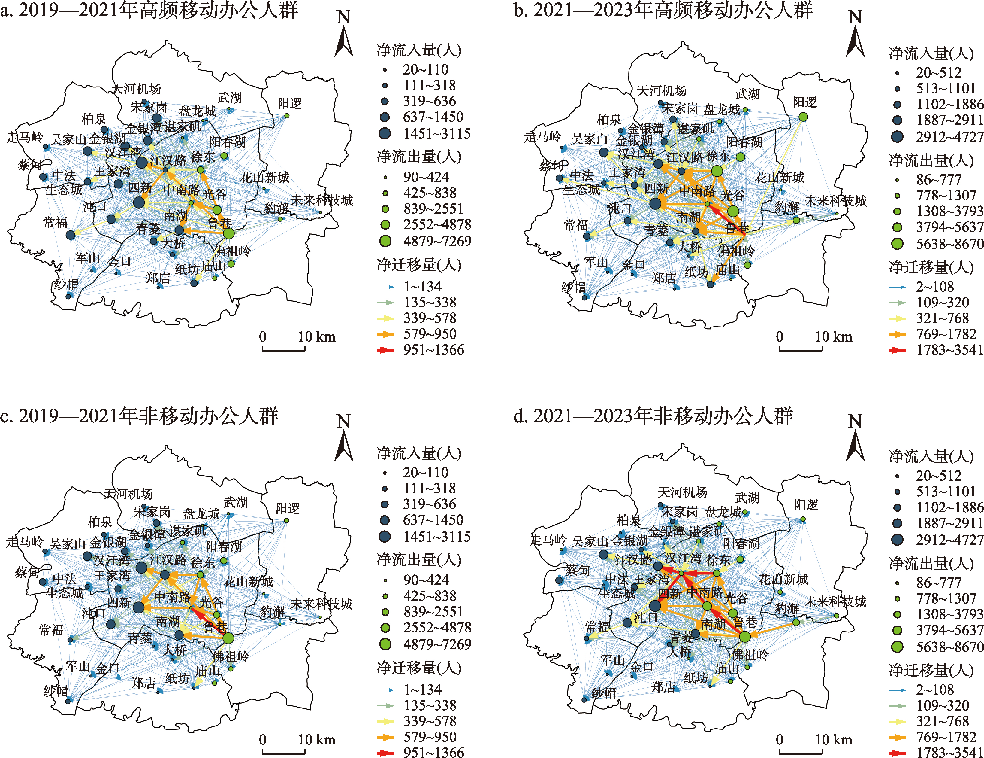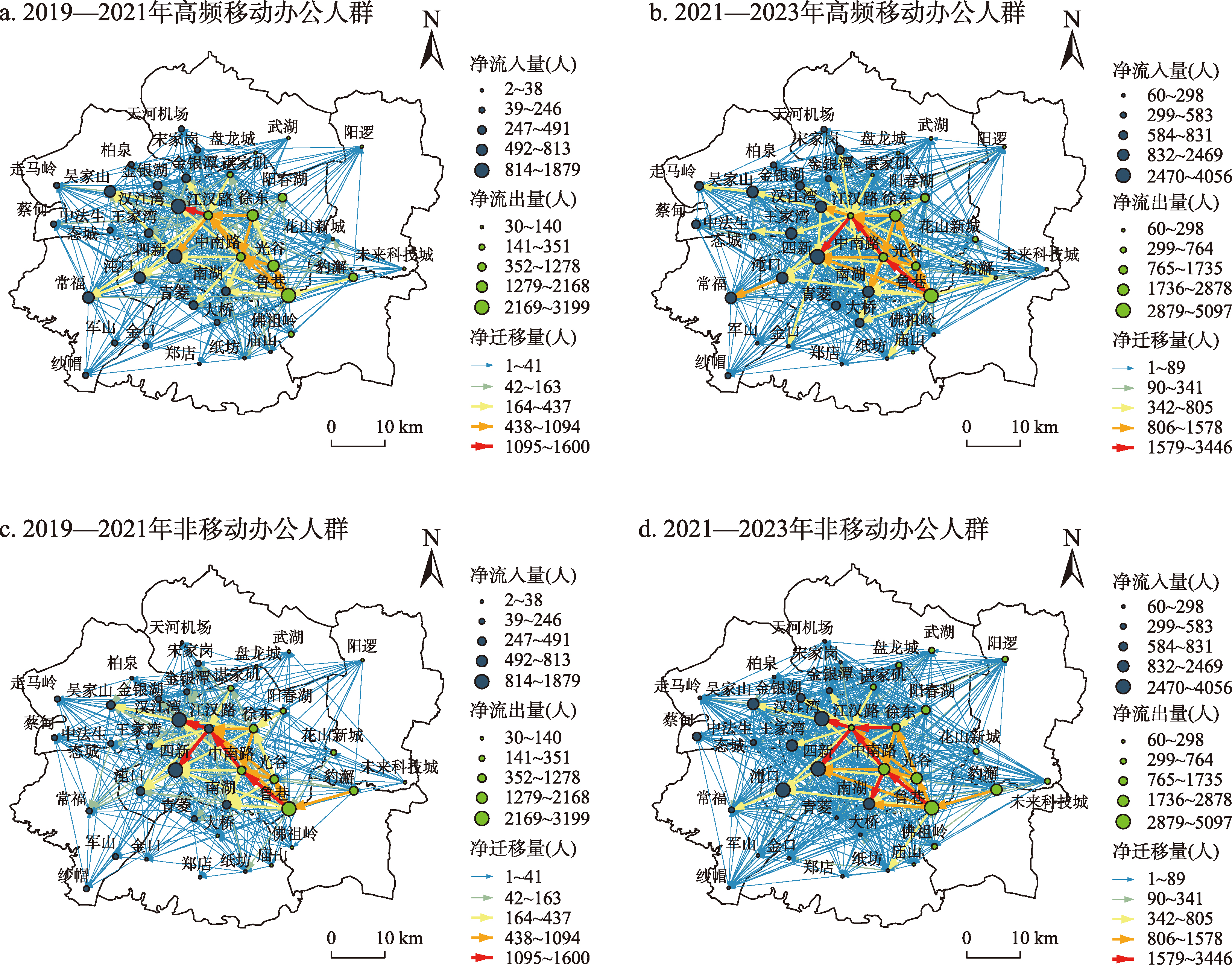 牛强, 张浩, 伍磊, 等. 近年来移动办公发展的城-郊异质性特征研究: 基于2019年与2021年武汉市联通用户手机App使用大数据. 地理科学进展, 2022, 41(8): 1428-1439.