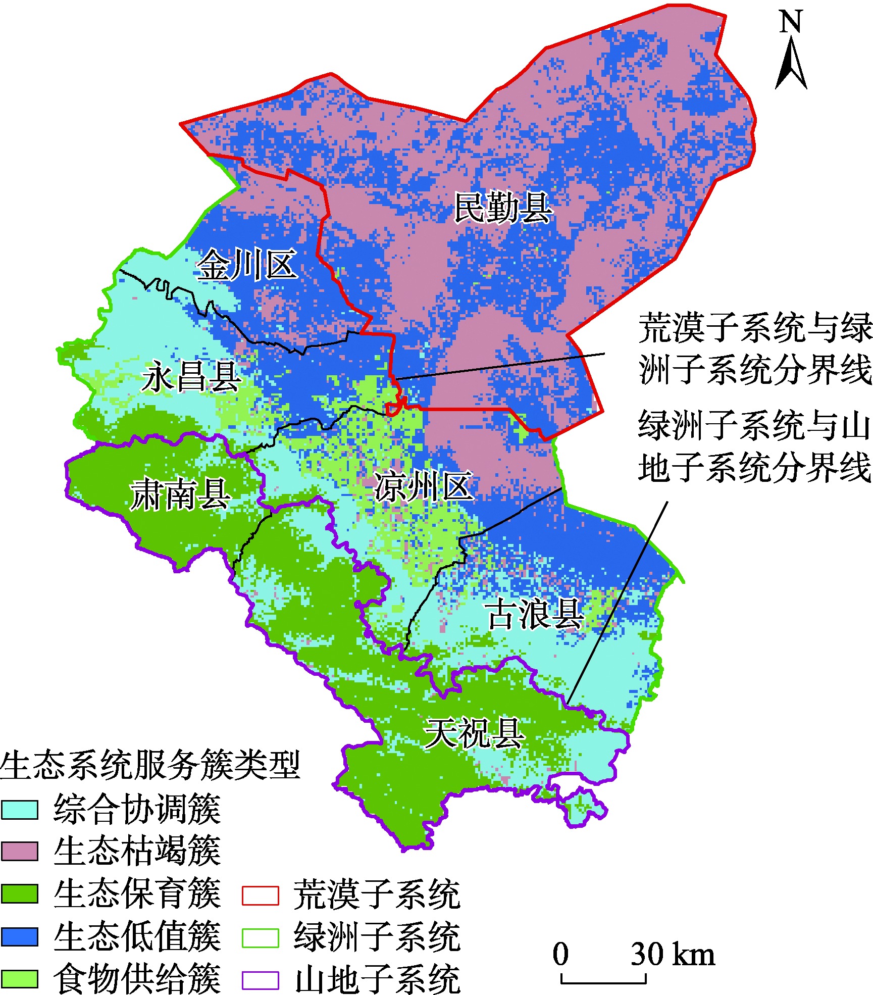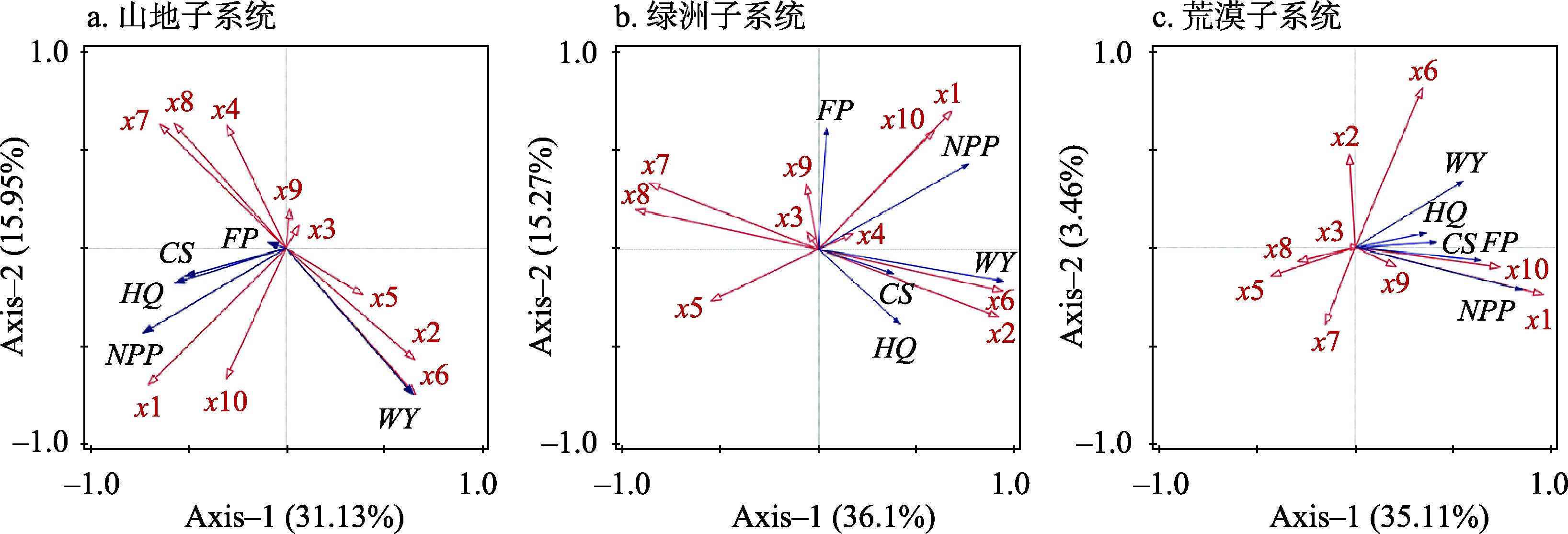 关键词: “山地-绿洲-荒漠”系统; 生态系统服务簇; 冗余分析; 石羊河流域