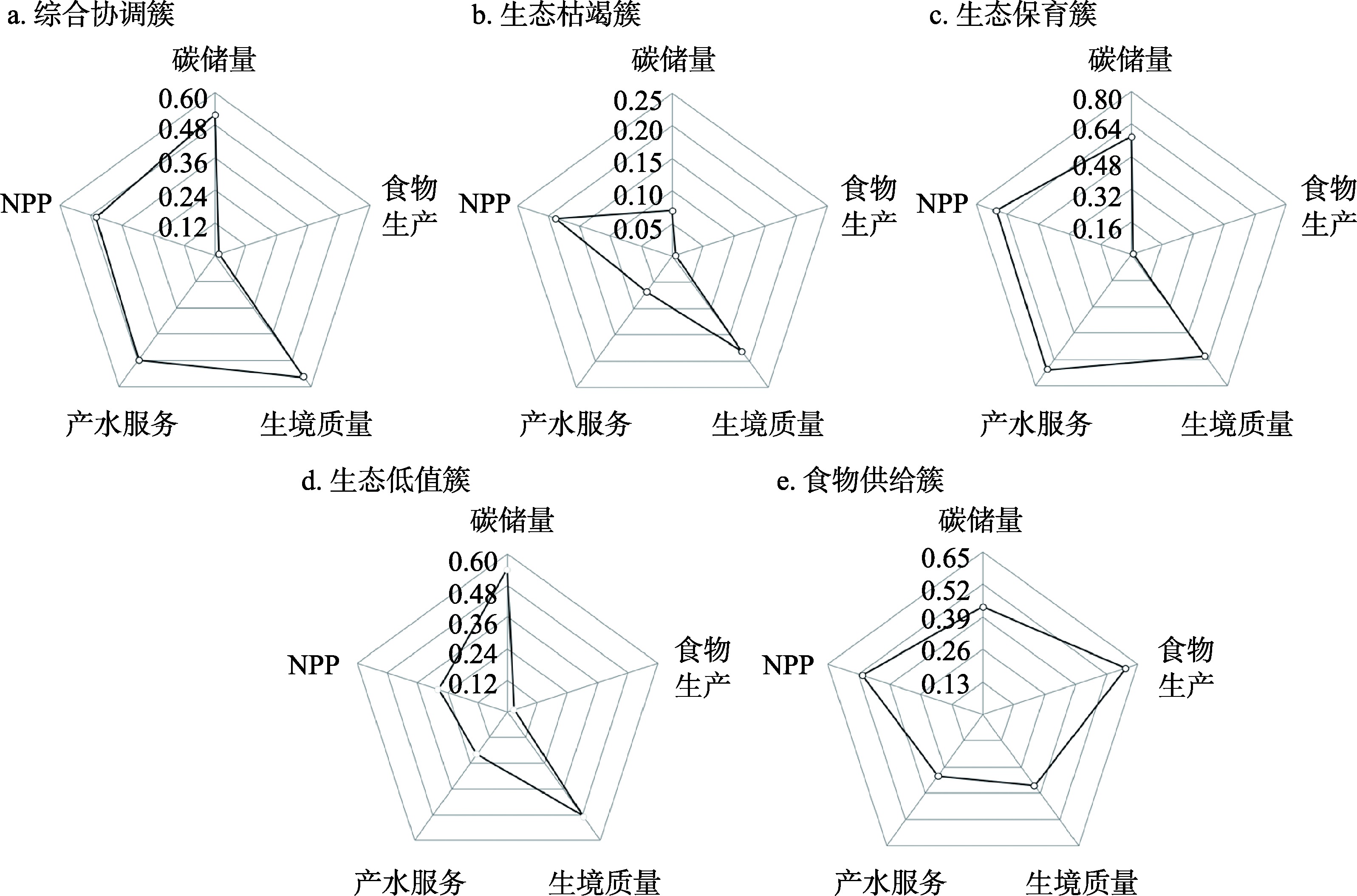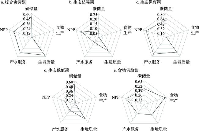 | 名称 | 综合协调簇 | 生态枯竭簇 | 生态保育簇 | 生态低值簇 | 食物供给簇 |