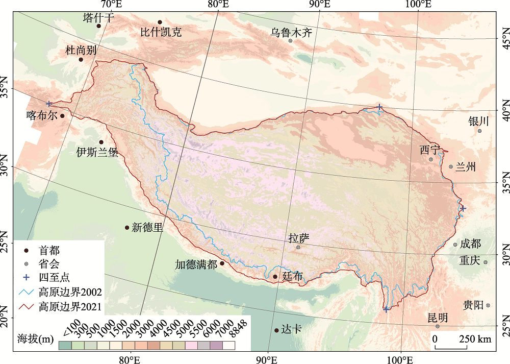 青藏高原分布范围(“2021版”)及与“2002版”比较示意图