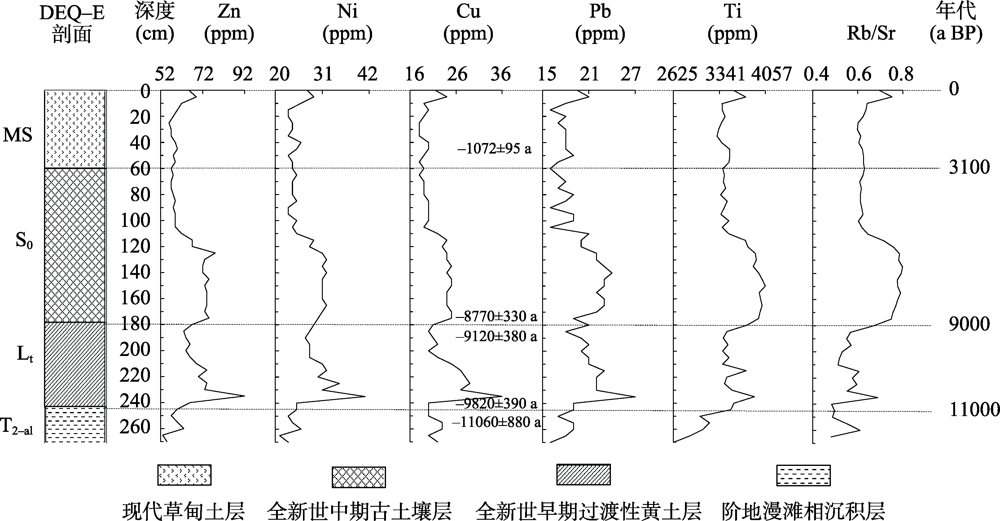 黄河源玛曲段达尔琼东(DEQ-E)剖面微量元素含量变化曲线图
