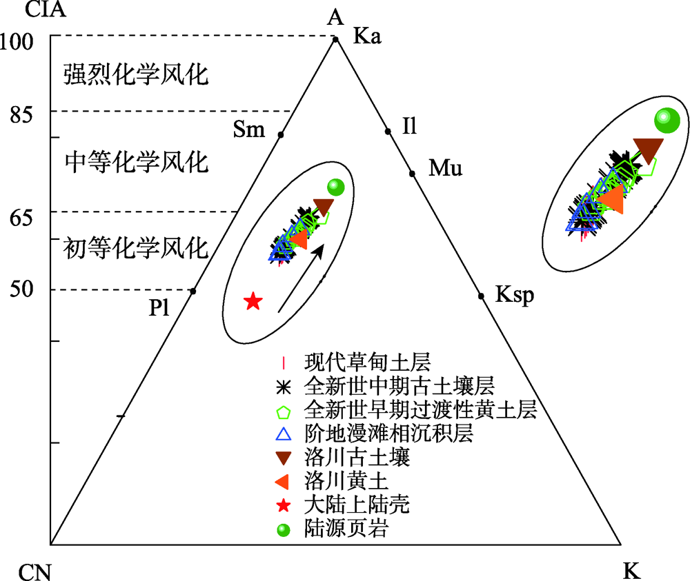 黄河源玛曲段达尔琼东(DEQ-E)剖面A-CN-K三角图