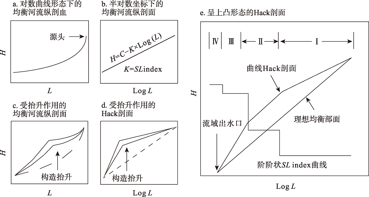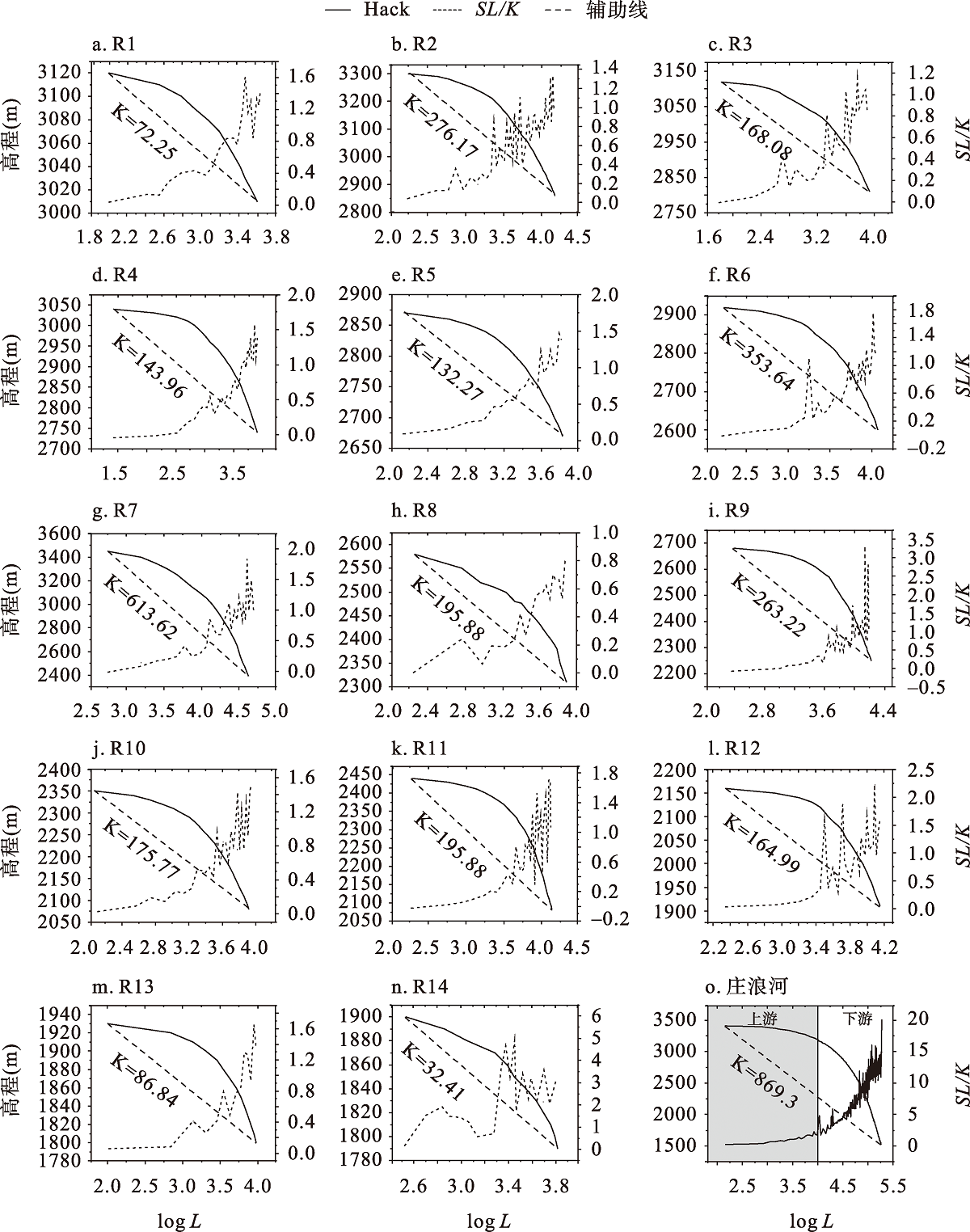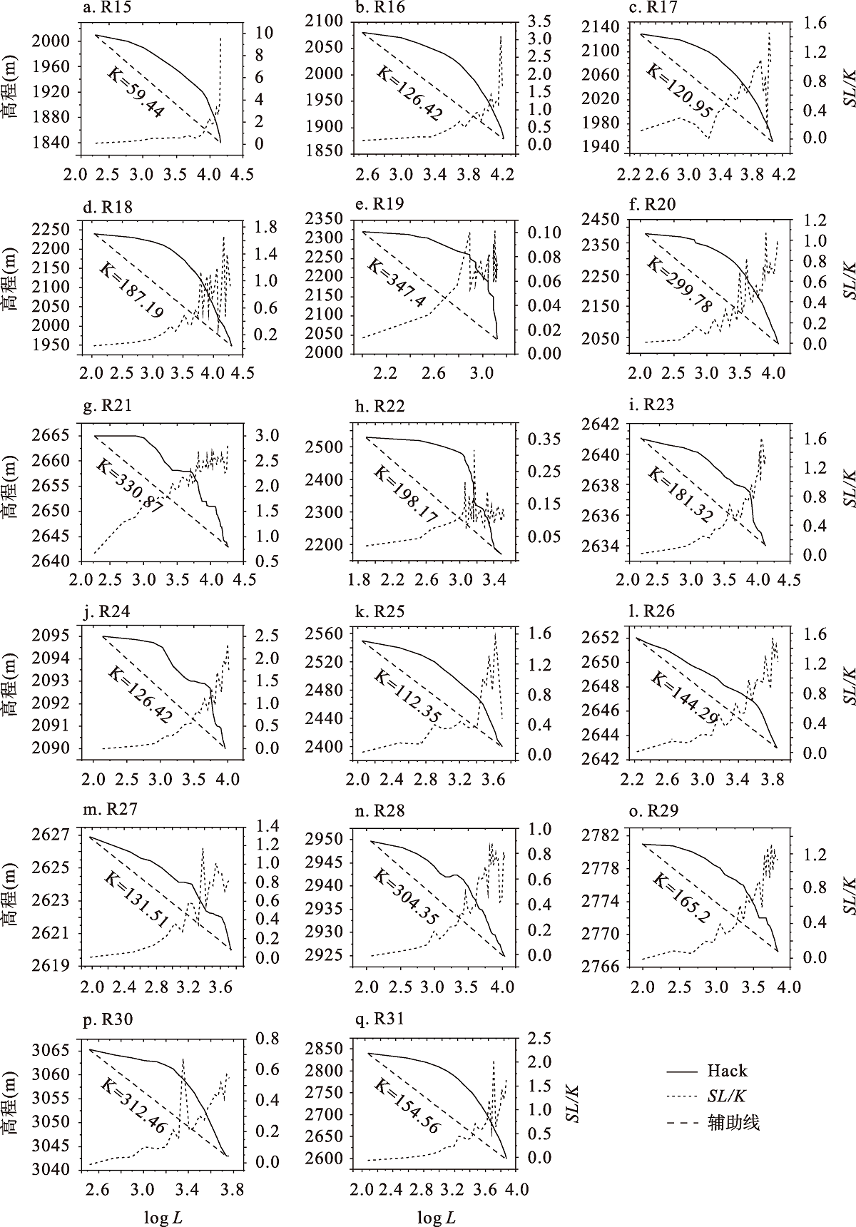 干流西侧支流及干流的标准河流坡降SL/K和Hack剖面