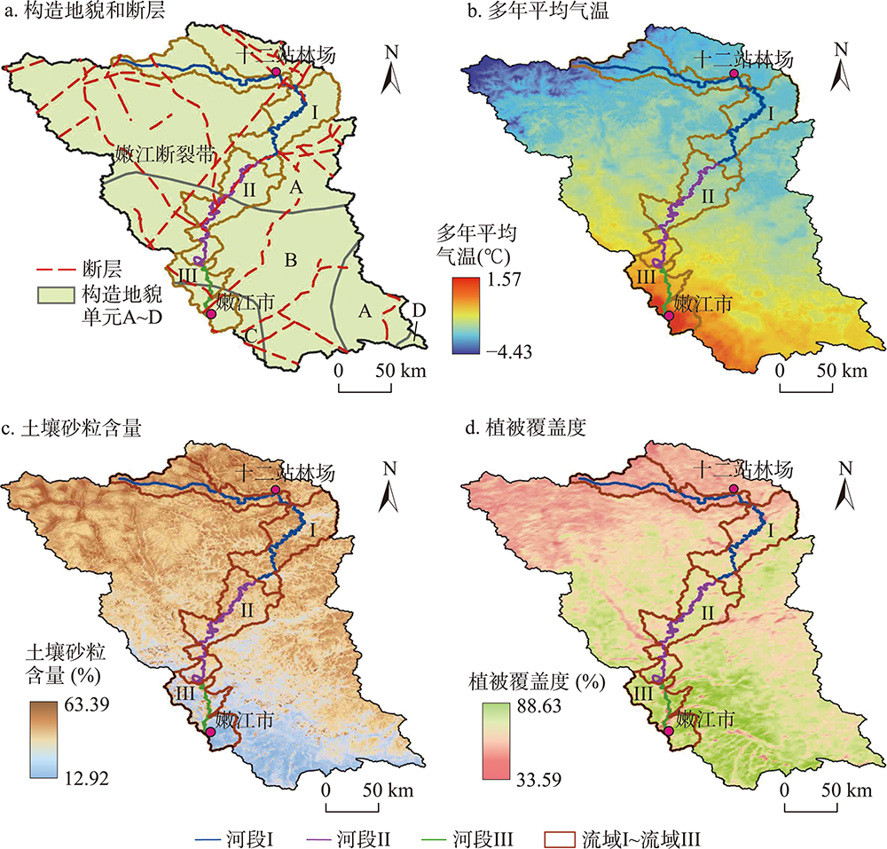 中构造地貌单元A-D依次为燕山运动隆起、喜山运动上升的山地丘陵、喜山运动期间上升的熔岩台地和高原、燕山运动以来下沉占优势的平原、喜山运动第一幕下沉第二幕上升的平原(已受不同程度侵蚀切割)。