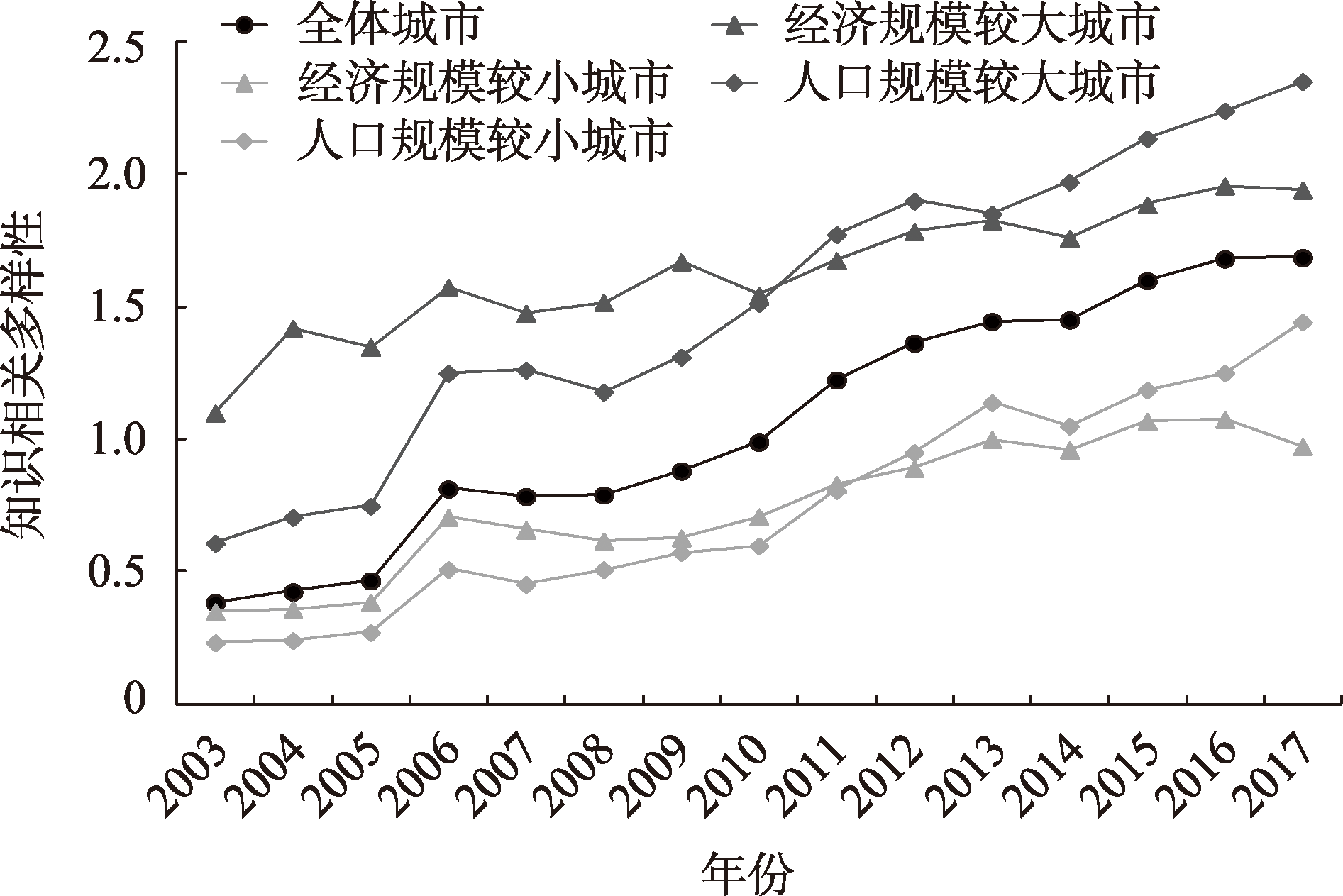 2003—2017年中国城市知识相关多样性演变
