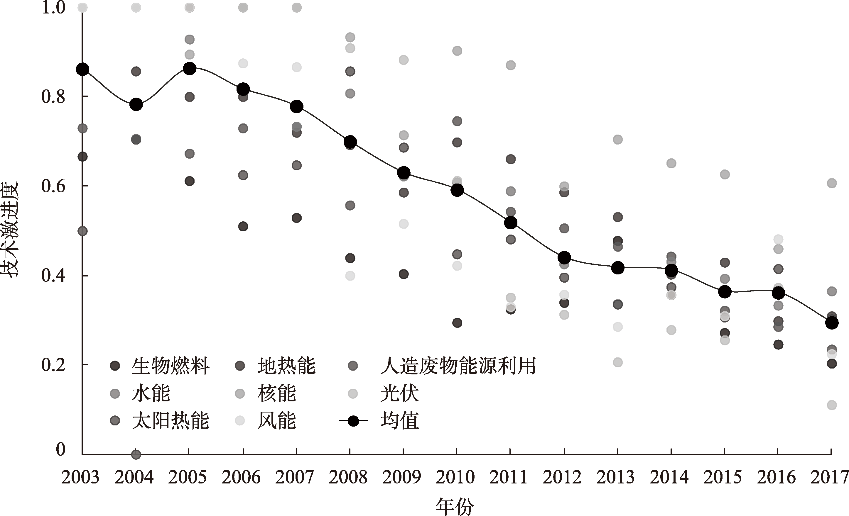 2003—2017年可再生能源技术激进度演变