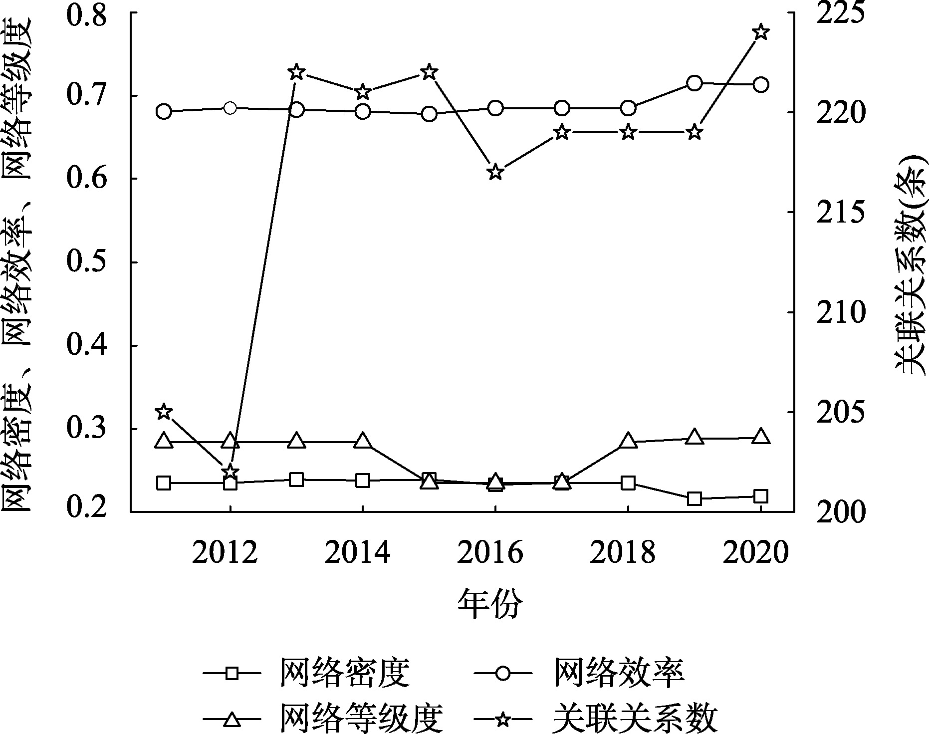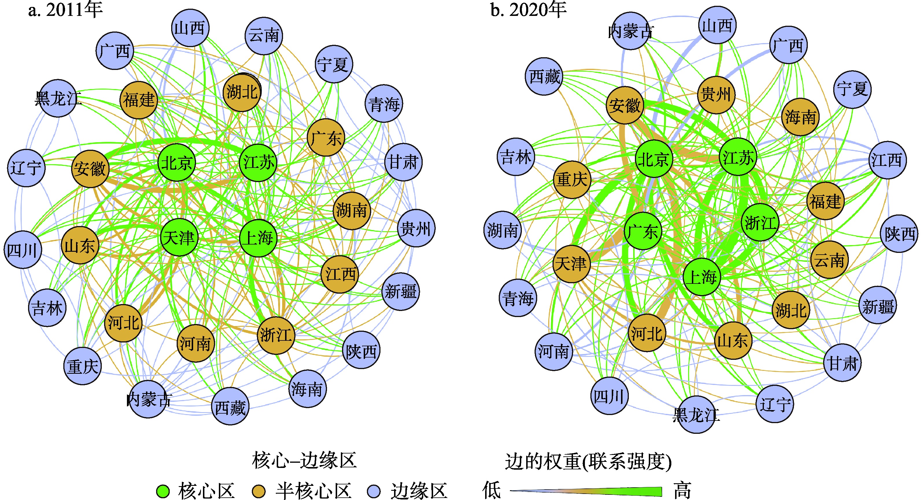 2011—2020年中国省际旅游生态韧性整体网络结构