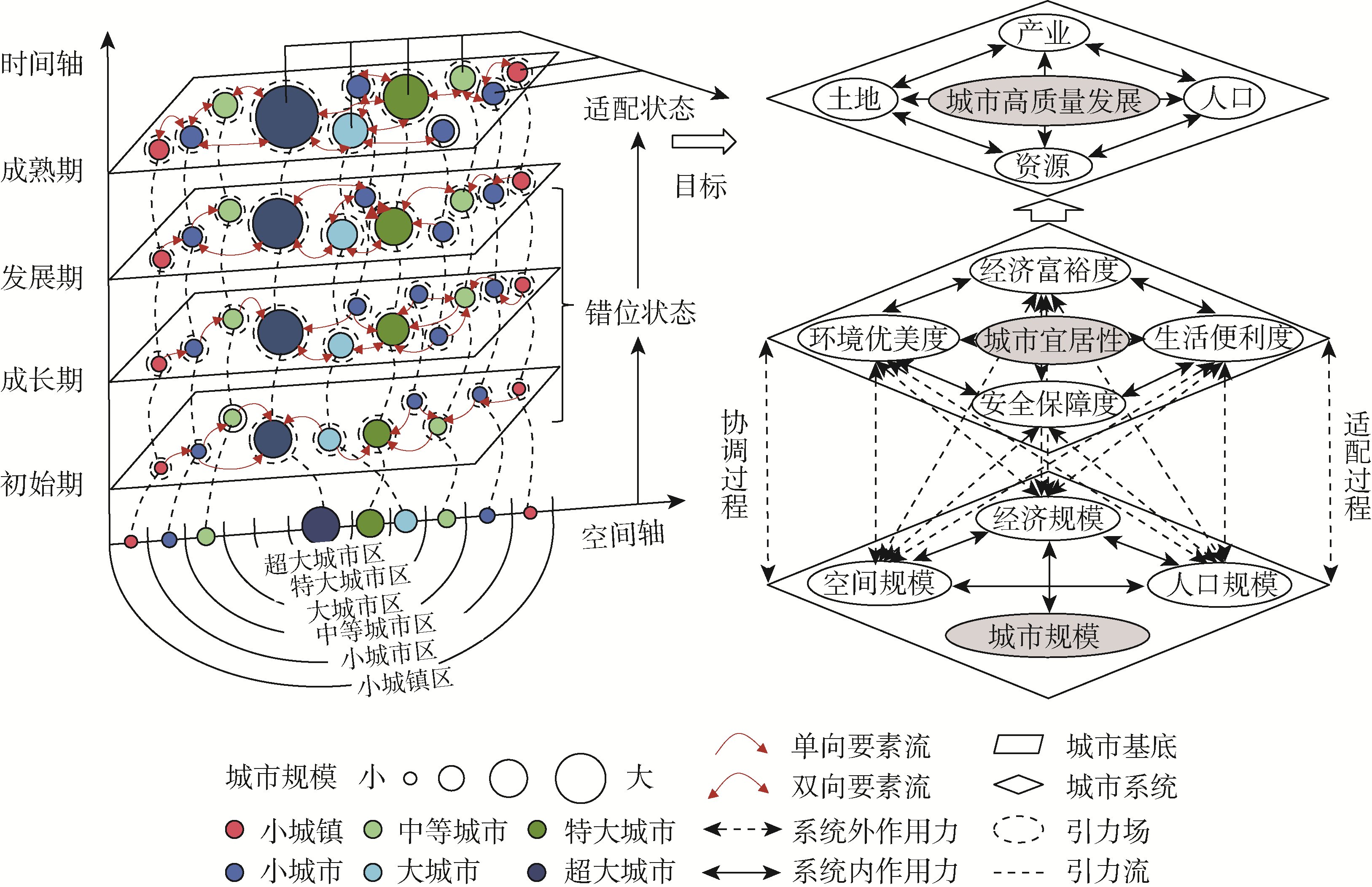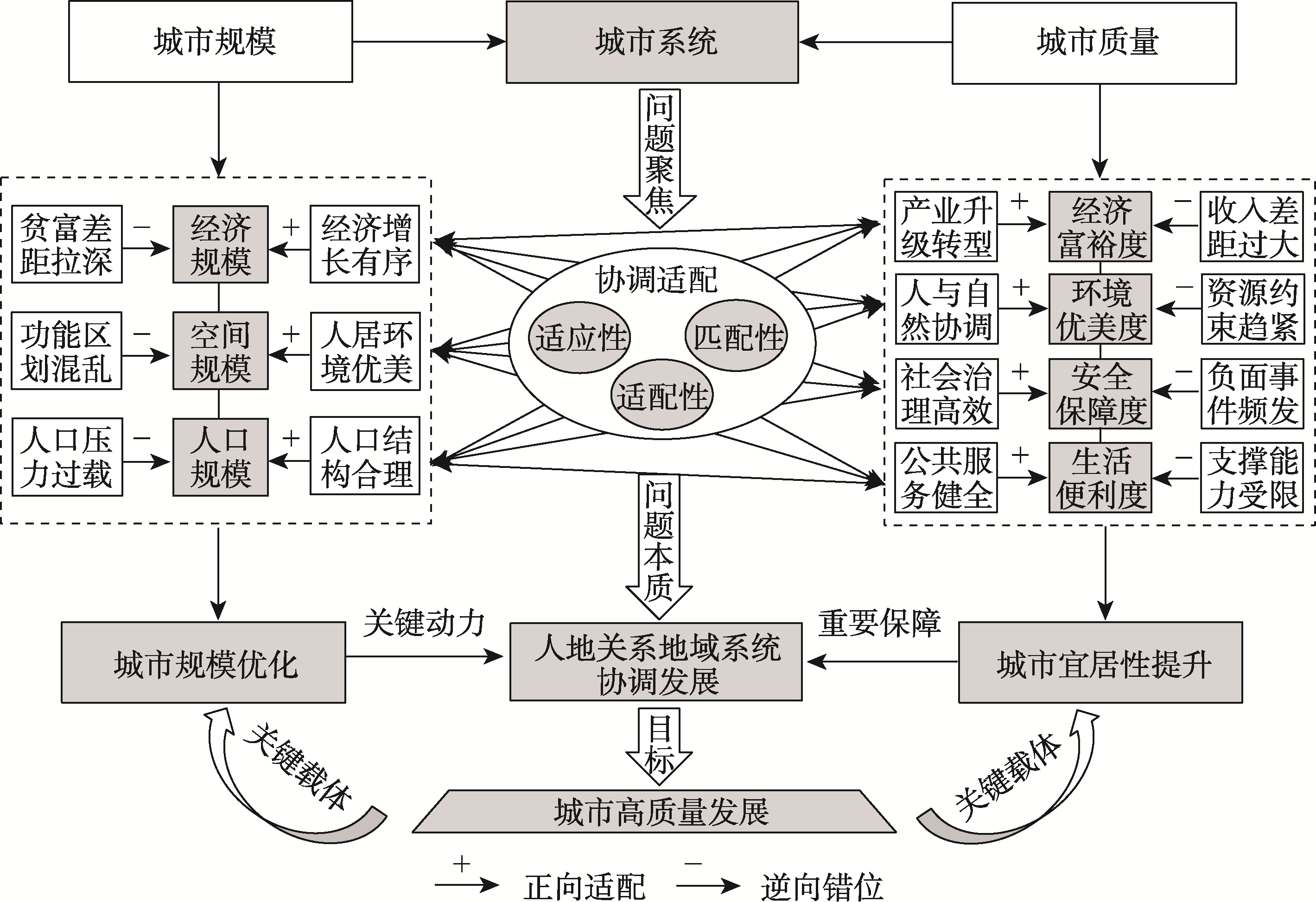 城市规模与城市宜居性适配关系的作用机理示意