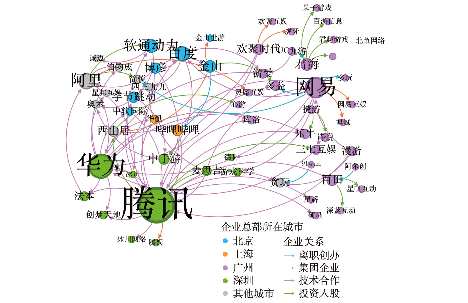 湾区游戏人才所在主要企业合作网络关系图