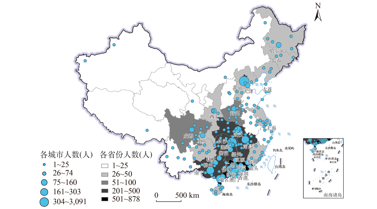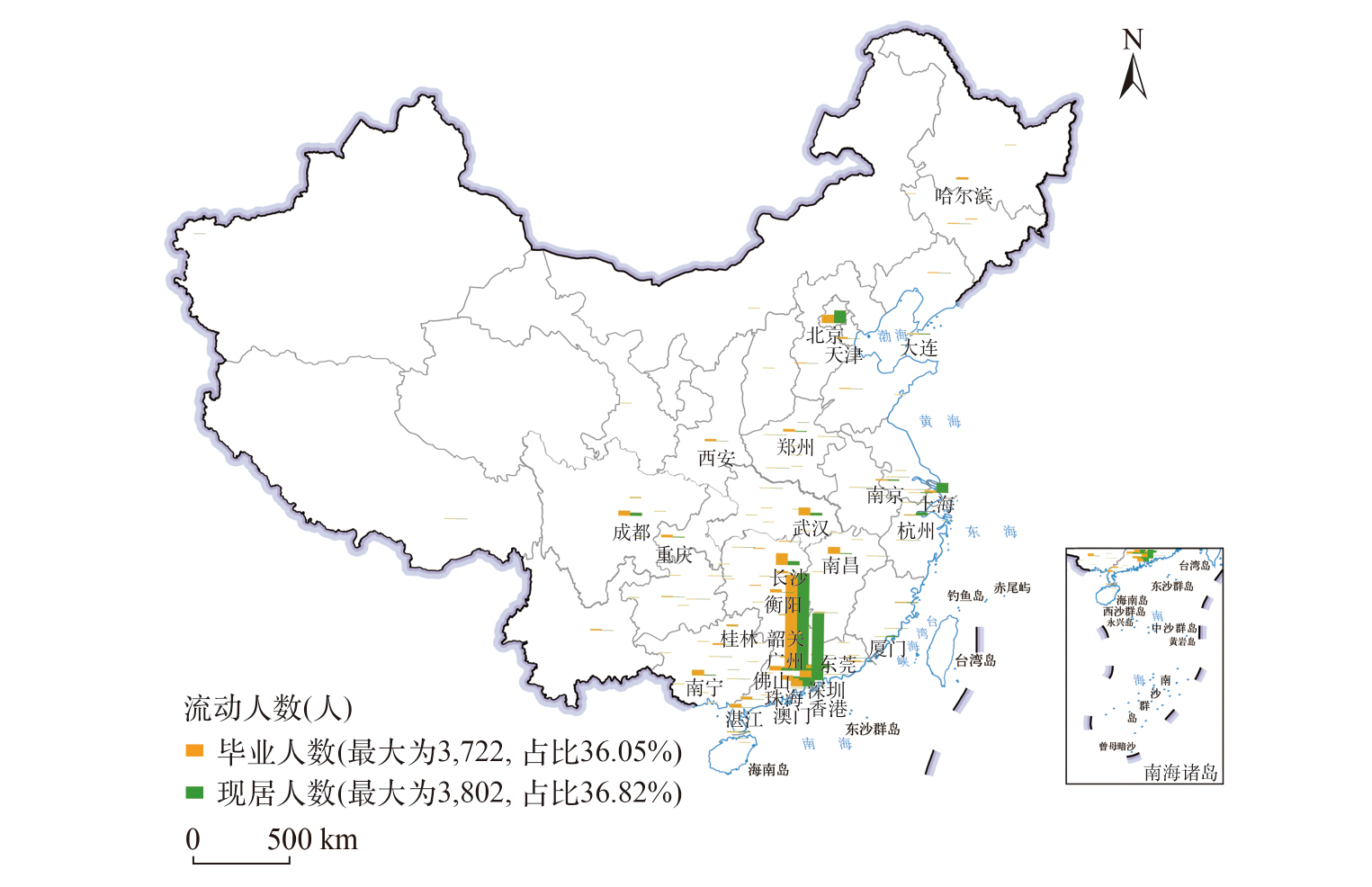 粤港澳大湾区游戏人才在全国的毕业地和现居地分布