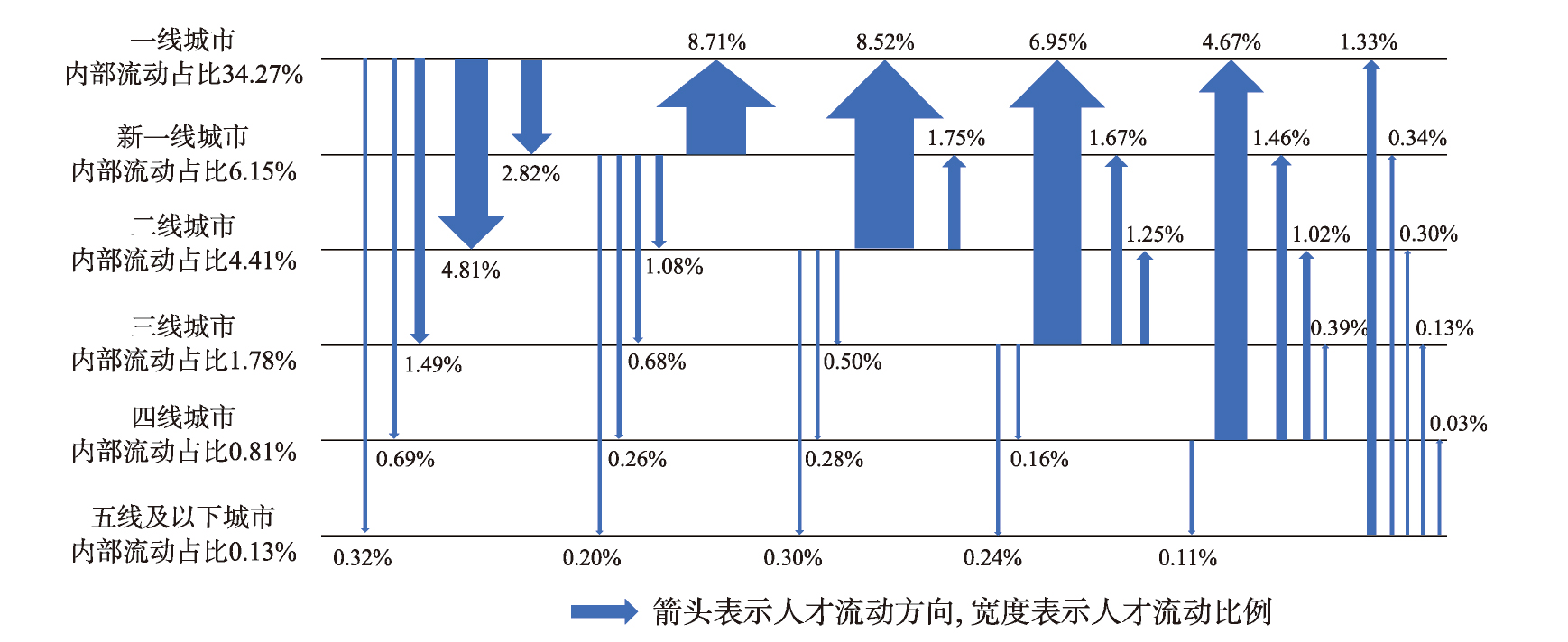湾区游戏人才初次就业在全国不同等级城市间流动