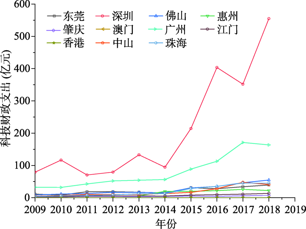 2009—2018年粤港澳大湾区各市科技财政支出情况