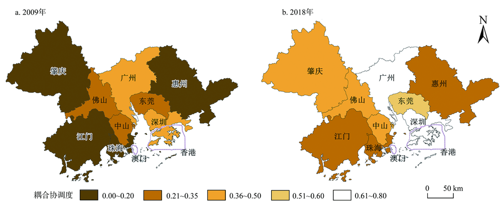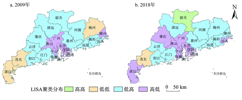 2009年和2018年广东省及香港特别行政区科技金融耦合协调度空间相关Moran′s