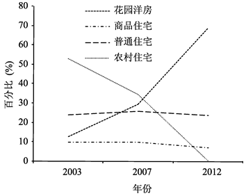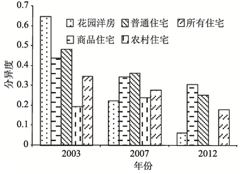Fig. 3 Percentage of the total residential land area图3 2003-2012年住宅用地占地面积比例情况 |