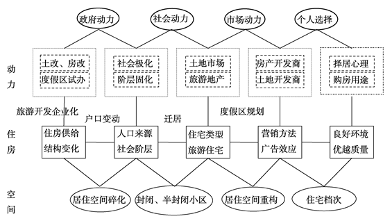 Fig. 5 Process of residential differentiation and driving mechanism图5 大连金石滩居住空间分异过程和驱动机制 |