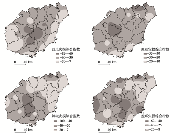 Fig. 4 The zoning of damage loss for melon and vegetables in Hainan province图4 海南省瓜菜灾损综合指数 |